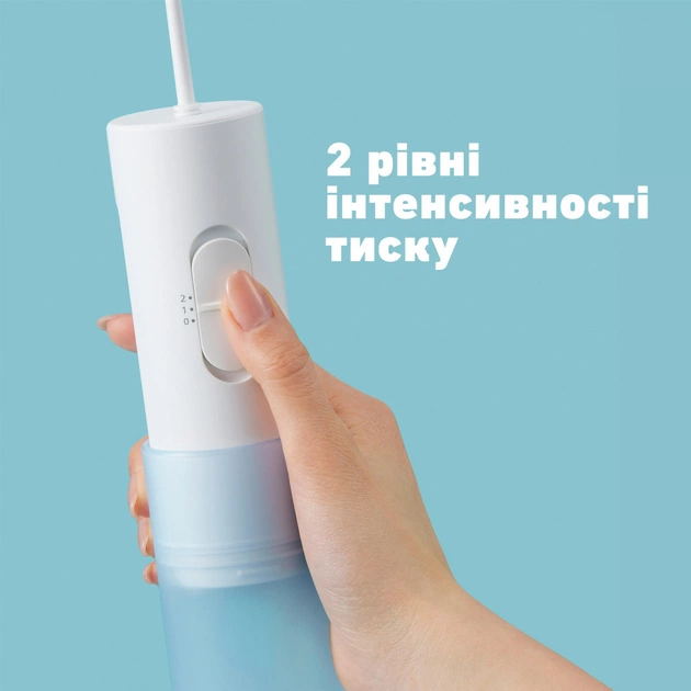 2 уровня интенсивности давления водыНастройте устройство в соответствии с чувствительностью десен и личными предпочтениями с помощью 2 уровней регулировки давления воды.
