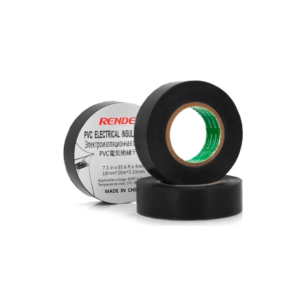 Ізоляційна стрічка Render 0.19мм*16мм*7м Black, temp-10+80°С, 2000V, 10 шт. (0,19мм*16мм*7м-Bk)