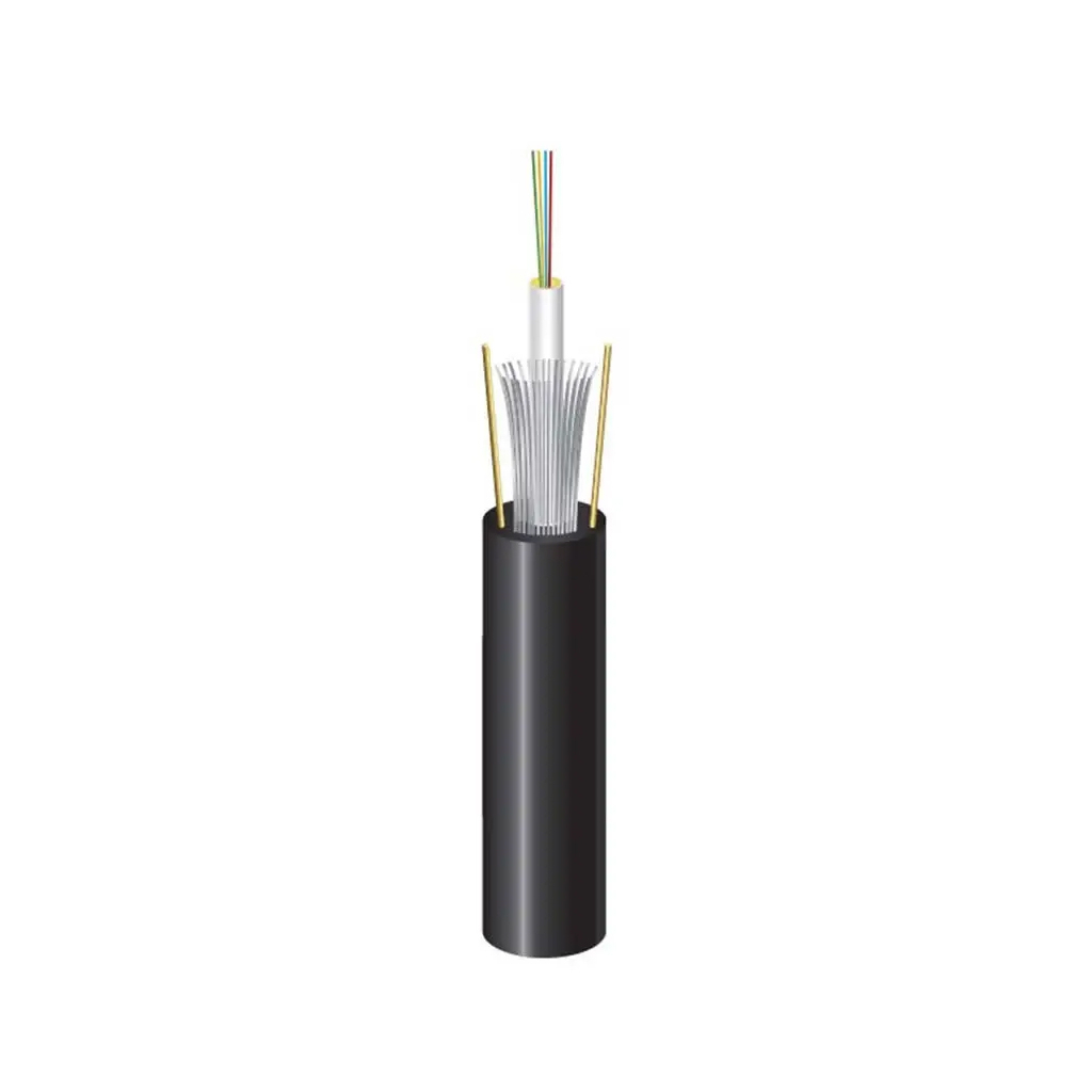 Кабель с центральным оптическим модулем, в котором может располагаться до 24 оптических волокон. Поверх модульной трубки расположен слой упрочняющих стекловолокон. Оболочка изготовлена из малодымного безгалогенного пластиката (LSZH). Для увеличения стойкости к растягивающим нагрузкам в оболочку встроены два арамидно-пластиковых силовых элемента.