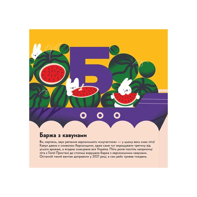Привет! Я — книжечка о городе мореходства и храбрых людях — Херсоне. Когда-то здесь проживали кочевые племена и казаки, теперь строят суда и выращивают самые сладкие арбузы. Мои авторы посетили перуанский уголок, попробовали чабанскую шурпу и краем глаза увидели редких животных Аскании-Новой, а все для того, чтобы создать алфавит о нашем степном крае. Каждая буква – это ДНК города, уникальная черта, без которой немыслима его история. А чтобы Херсону не было одиноко, авторы создали целую серию книг о несокрушимых городах Украины. Так что собирай всю семейку и становись домашним экспертом по истории храбрейшей нации XXI века.