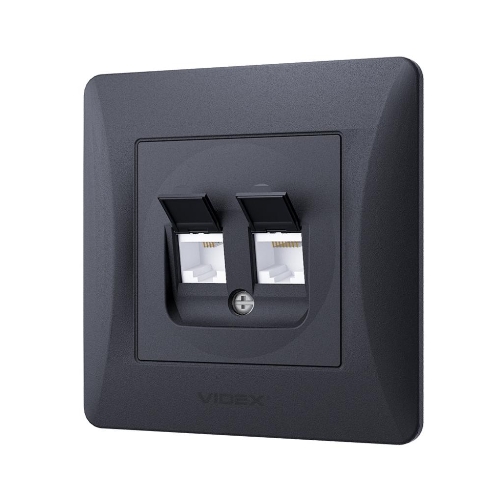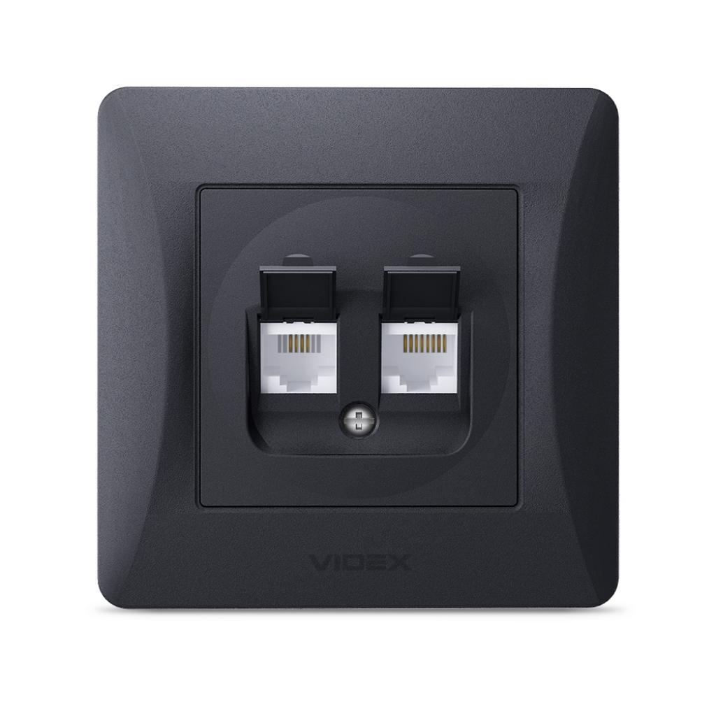 Комп'ютерна розетка Videx BINERA CAT6 + CAT3 подвійна черн (VF-BNSK2PC6TF3-BG)