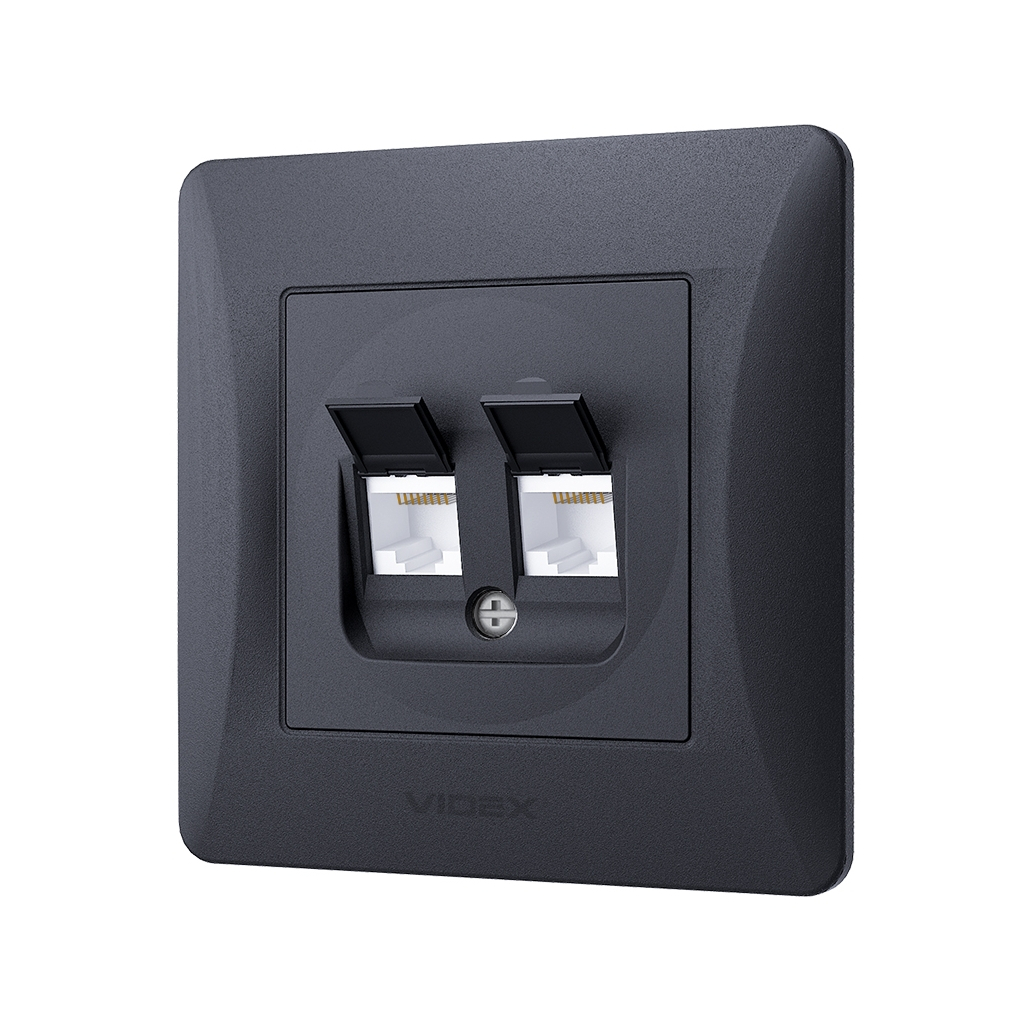 Комп'ютерна розетка Videx BINERA CAT6 + CAT6 подвійна черн (VF-BNSK2PC6-BG)
