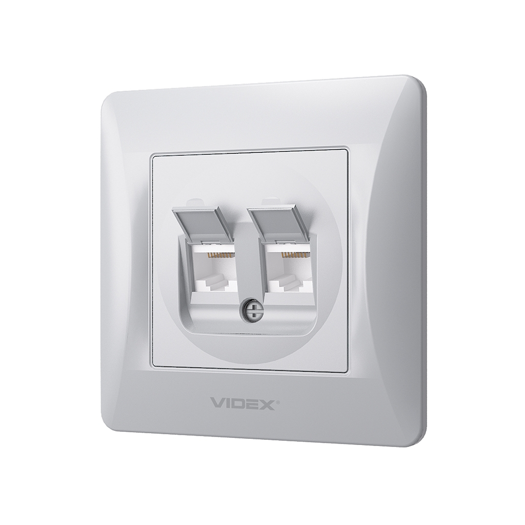 Комп'ютерна розетка Videx BINERA CAT6 + CAT6 подвійна сереб (VF-BNSK2PC6-SS)