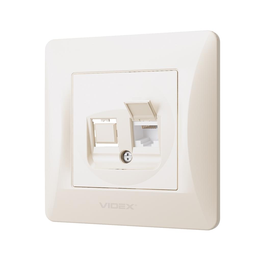 Комп'ютерна розетка Videx BINERA CAT6 одинарна кремова (VF-BNSK1PC6-CR)