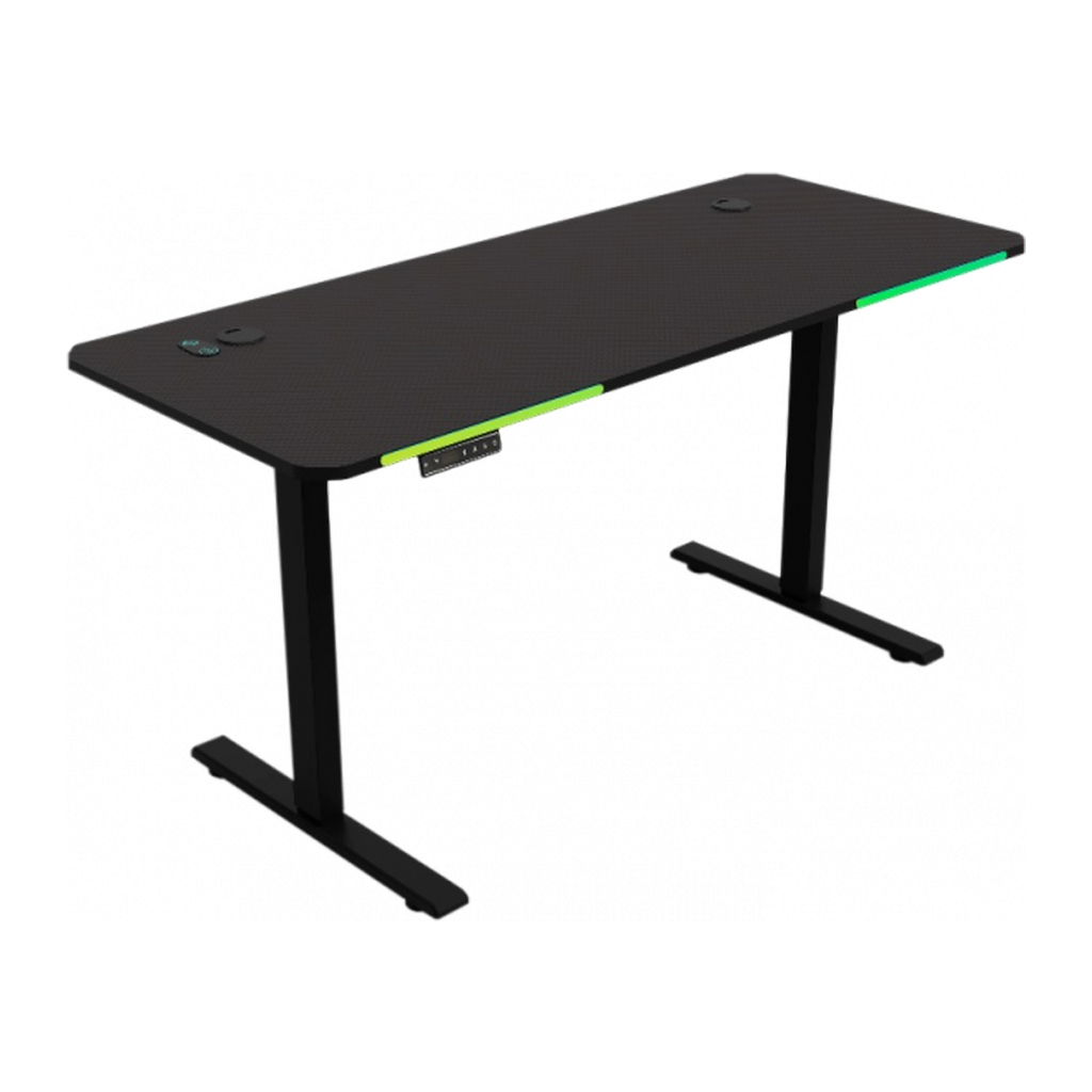 Стол оборудован LED-подсветкой с возможностью выбора режимов при помощи пульта управления. Благодаря оптимальной глубине и форме столешницы можно поддерживать естественное положение рук и правильную дистанцию до монитора. Система кабель-менеджмента помогает аккуратно организовать провода и поддерживать порядок.