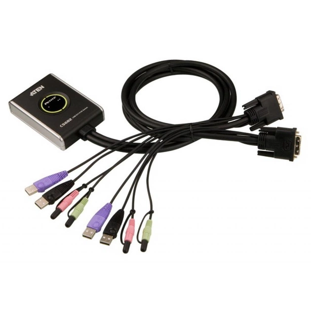 Коммутатор KVM Aten CS-682 совместим со многими платформами, включая Windows, в частности Windows 7 , Mac, Sun и Linux. Поддерживаемая технология Video DynaSync предотвращает проблемы, которые могли бы возникнуть во время загрузки компьютера, и устанавливает настройки монитора, обеспечивая оптимальное разрешение экрана и лучшее качество изображения при переключении между портами. Сочетание поддержки DVI и звуковых систем 2.1, возможности совместного использования периферийного устройства USB 2.0 с расширением удобных в управлении функций, позволяет пользователям не отставать от последних новшеств в мультимедийных приложениях