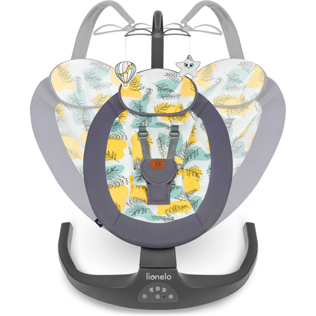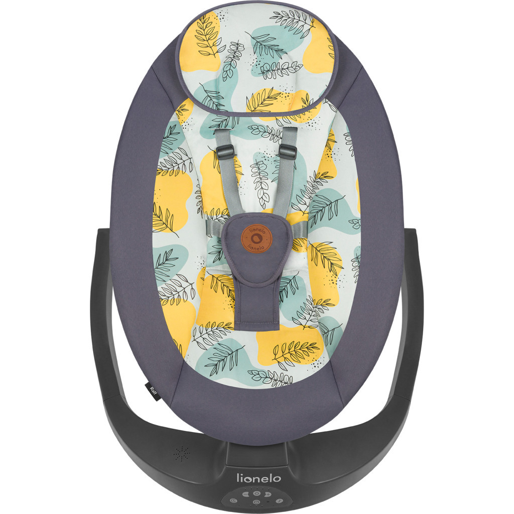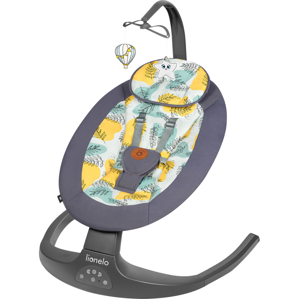 Качалка Lionelo Ralf имеет вариант качания с пятью разными уровнями скорости. Движение качания боковое: вправо-влево. Встроенный таймер позволяет выбрать одно из трех значений времени качания — 8, 15 или 30 минут. В это время встроенная музыкальная шкатулка с 12 спокойными мелодиями и съемная повязка на голову с 2 игрушками успешно развлекут вашего малыша.