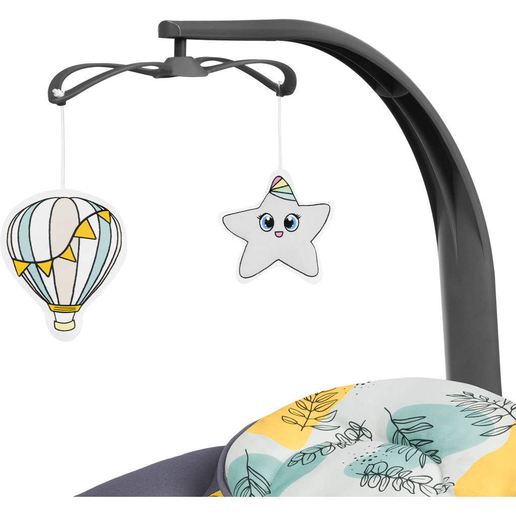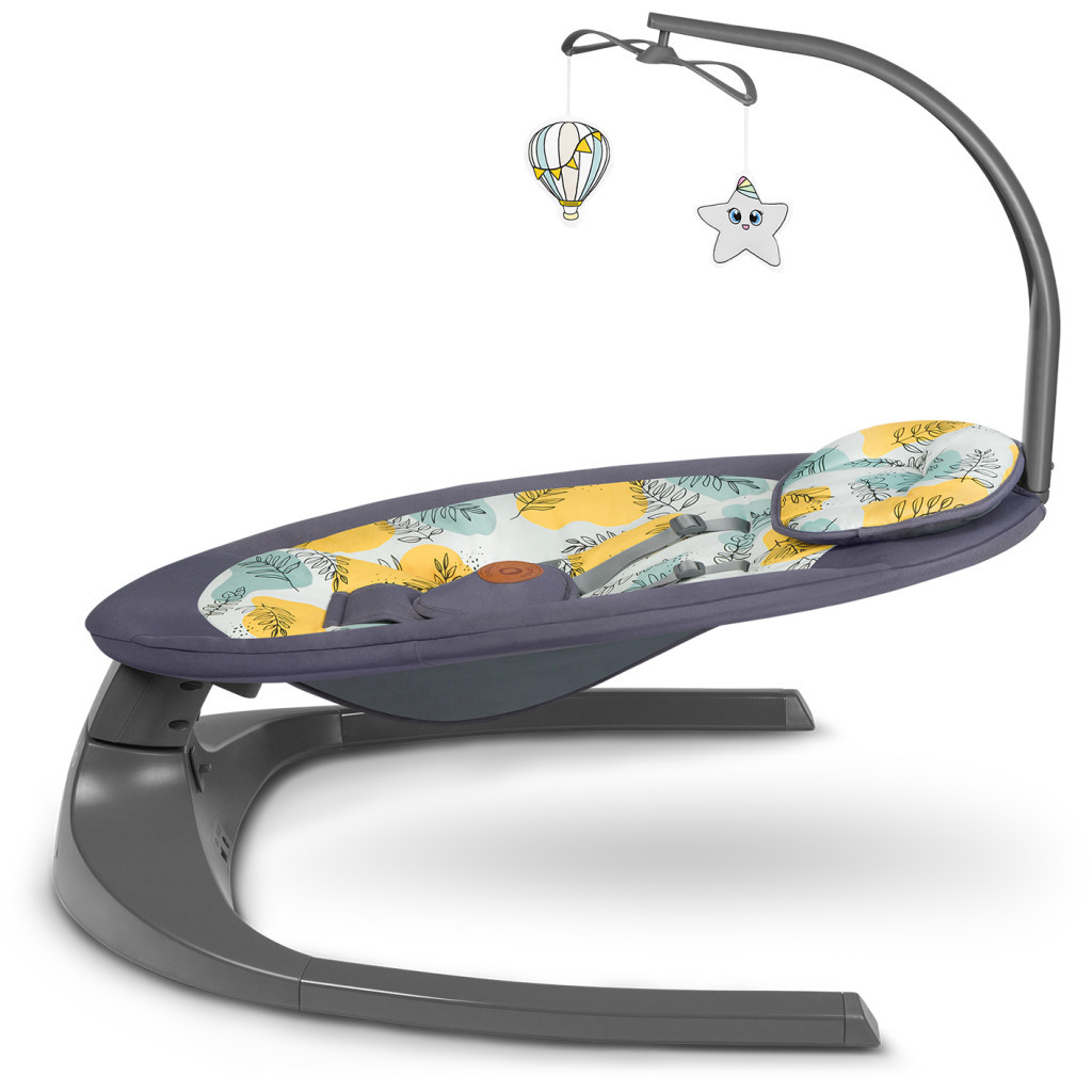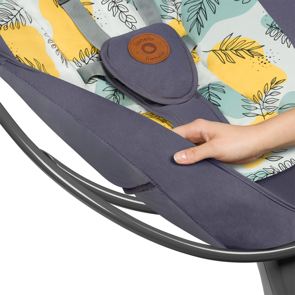 Качалка Lionelo Ralf имеет вариант качания с пятью разными уровнями скорости. Движение качания боковое: вправо-влево. Встроенный таймер позволяет выбрать одно из трех значений времени качания — 8, 15 или 30 минут. В это время встроенная музыкальная шкатулка с 12 спокойными мелодиями и съемная повязка на голову с 2 игрушками успешно развлекут вашего малыша.