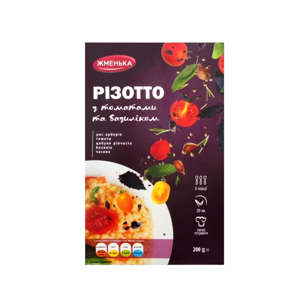 Все эти проблемы мы решили за Вас. Все необходимые составляющие изысканного рецепта отобранные, подготовленные и собранные в правильных пропорциях в одной упаковке. Все, что Вам нужно это: одна упаковка ризотто с томатами и базиликом ТМ «Жменька» + немного Вашего времени!!! И настоящее, вкусное и полезное блюдо готово!!!