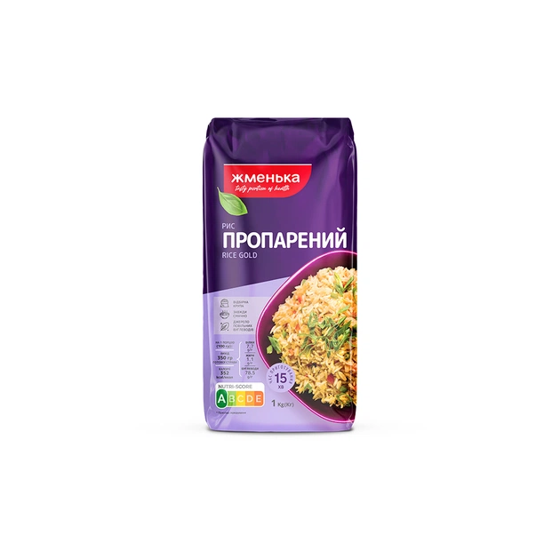 - В пропаренном рисе ТМ «Жменька» сохранено максимум полезных веществ. Благодаря современным технологиям производства, пропарки и бережного шлифования в рисе Пропаренный Gold ТМ «Жменька» сохранены витамины В1, В3, РР, фосфор, магний, железо, цинк и другие элементы.