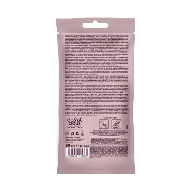 Delickcious Lamb Flavoured with Brown rice & Zucchini кремовое лакомство – ягненок с добавлением коричневого риса и цуккини. Дополнительный корм для кошек.