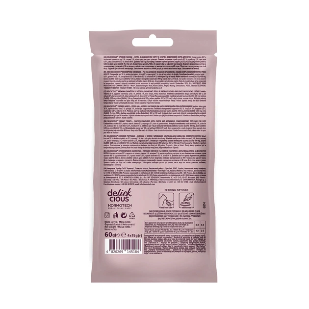 Ласощі для котів Delickcious курка з додаванням сиру та спаржі 4х15 г (4820269145184)