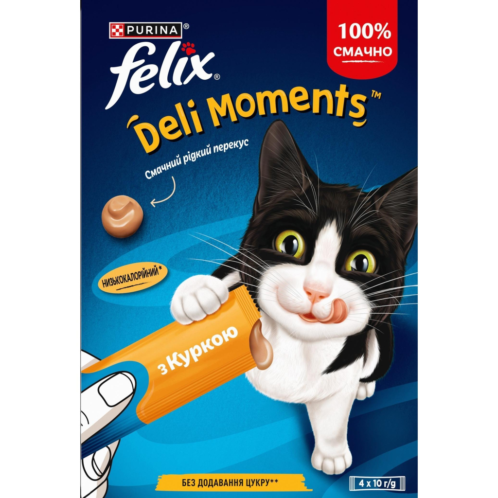 Благодаря невероятному вкусу и кремовой текстуре FELIX Вкусные Моменты, ваш котик снова и снова будет охотиться за вкусностями. Низкокалорийный перекус, без добавления сахара.