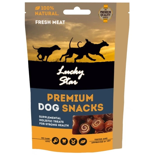 Лакомство для собак Lucky Star (Лакки Стар) Мини-роллы с мясом курицы и трески – это настоящее наслаждение для вашего любимца.