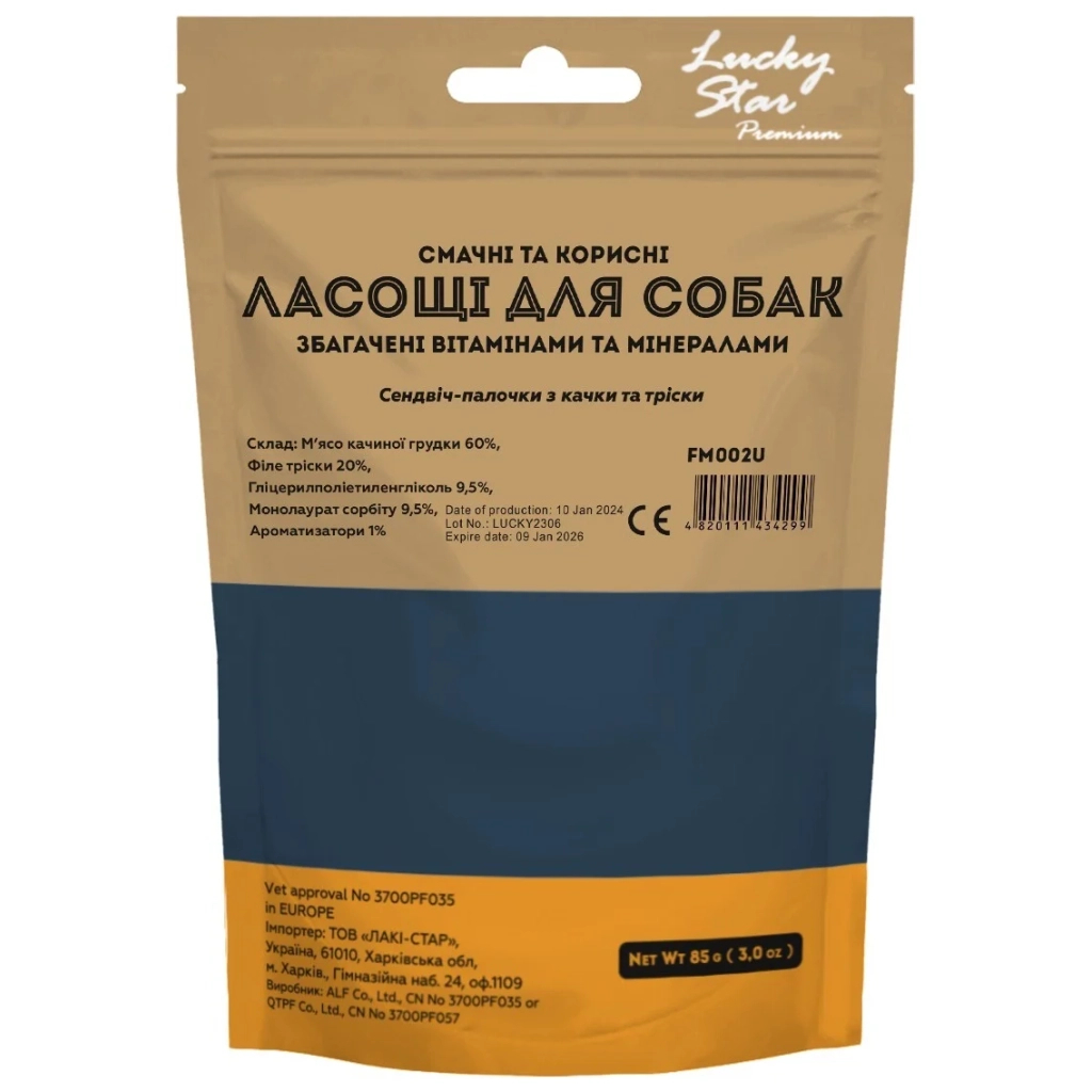 Ласощі для собак Lucky Star Сендвіч-палочки з качки та тріски 85 г (4820281500183)