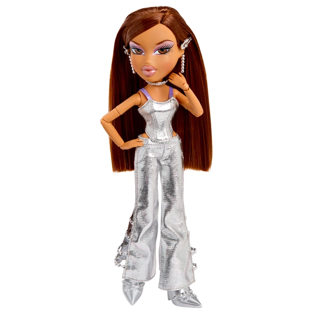 Кукла BRATZ Charmz Ясмин предстает в эффектном праздничном образе металлического цвета: с длинными прямыми каштановыми волосами, выразительным макияжем и стильным комплектом одежды в серебристых тонах. Ее образ сочетает элегантность и смелость – именно то, что делает Ясмин одной из самых любимых героинь Bratz. Юбилейный шарм и браслет придают набор коллекционности и символичности.