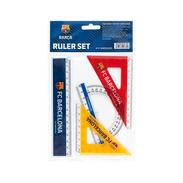 Лінійка Kite набір: лінійка 15 см, 2 косинця, транспортир FC Barcelona (BC25-282)