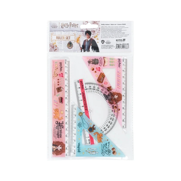 Лінійка Kite набір: лінійка 15 см, 2 косинця, транспортир Harry Potter (HP25-282)