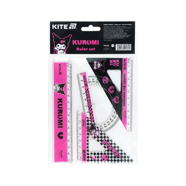 Лінійка Kite набір: лінійка 15 см, 2 косинця, транспортир Kuromi (HK25-282)