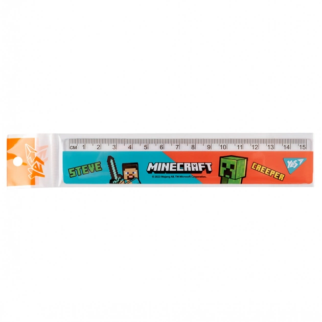 Лінійка Yes Minecraft блакитно-червона 15 см (370654)