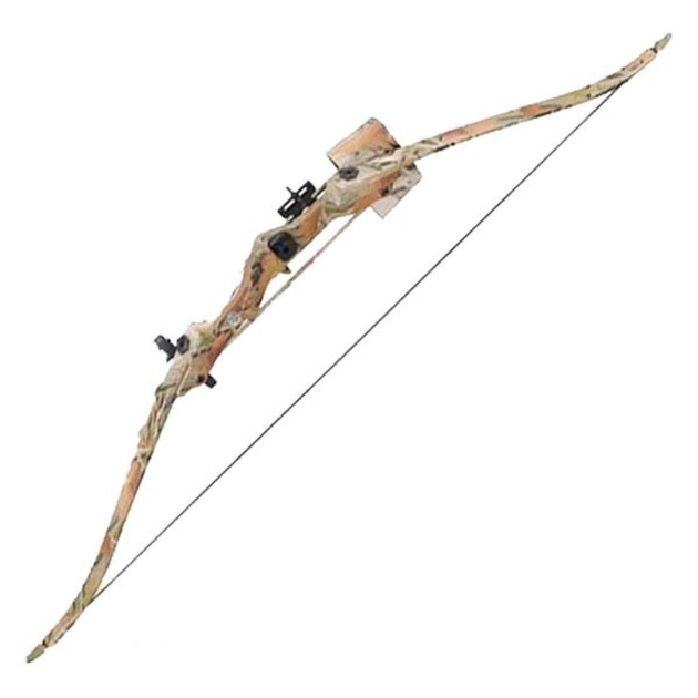 Лук выполнен из дерева и стекловолокна, что обеспечит легкость и надежность.