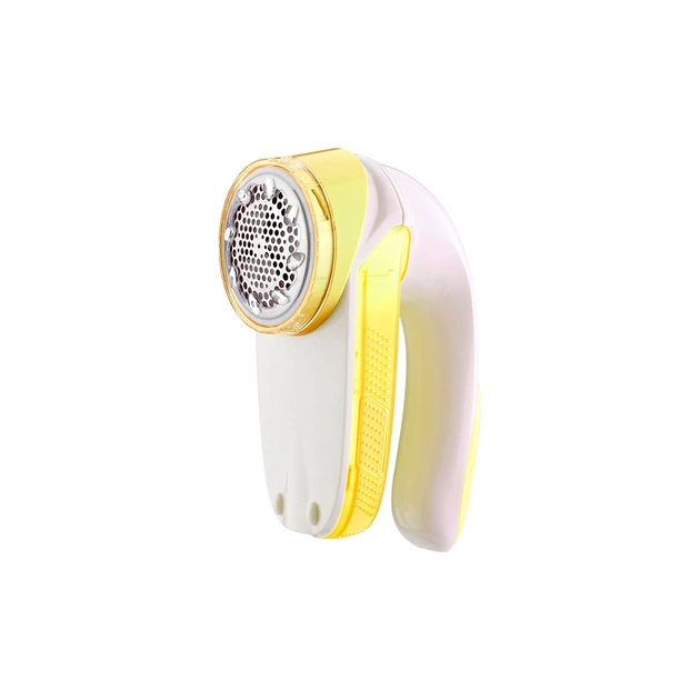 Машинка для подстригания катышек MG-432 поможет продлить жизнь ваших вязаных или трикотажных вещей. Прибор имеет удобную продолговатую ручку и выполнен из высококачественного пластика бело-желтого цвета. Защитная металлическая сетка имеет средние отверстия, что дает возможность быстрее справиться с большими лопатками, не застрявшими в машинке. Также устройство имеет съемный контейнер, куда попадают сбритые катышки, который можно легко снять и очистить.