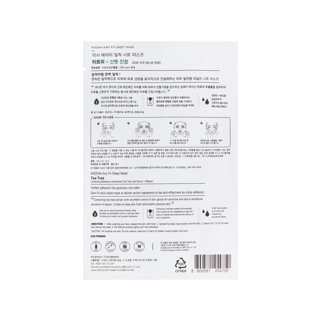 Особенности Missha Airy Fit Tea Tree Sheet Mask: