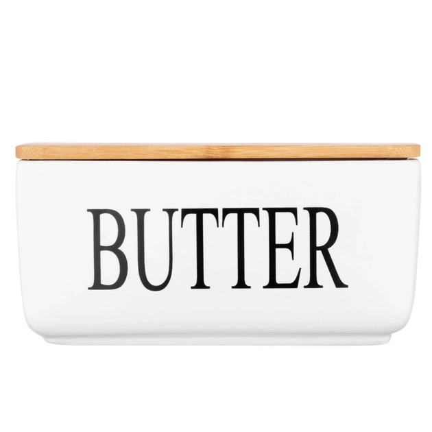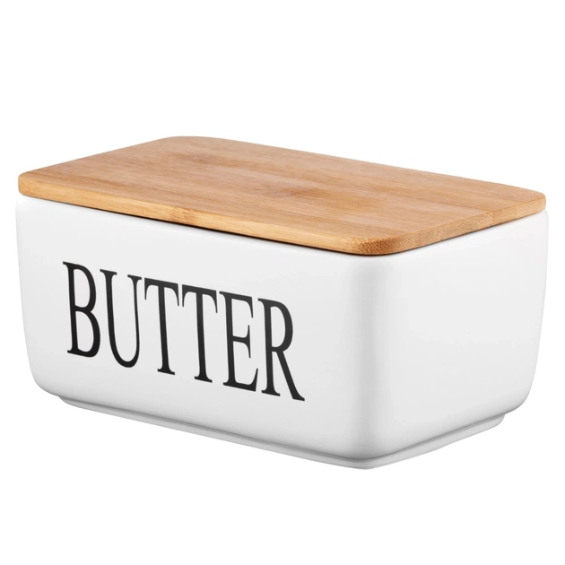 Маслянка кухонна Ardesto Midori 16.5х10х8см, кераміка, бамбук, біла (AR0908W)