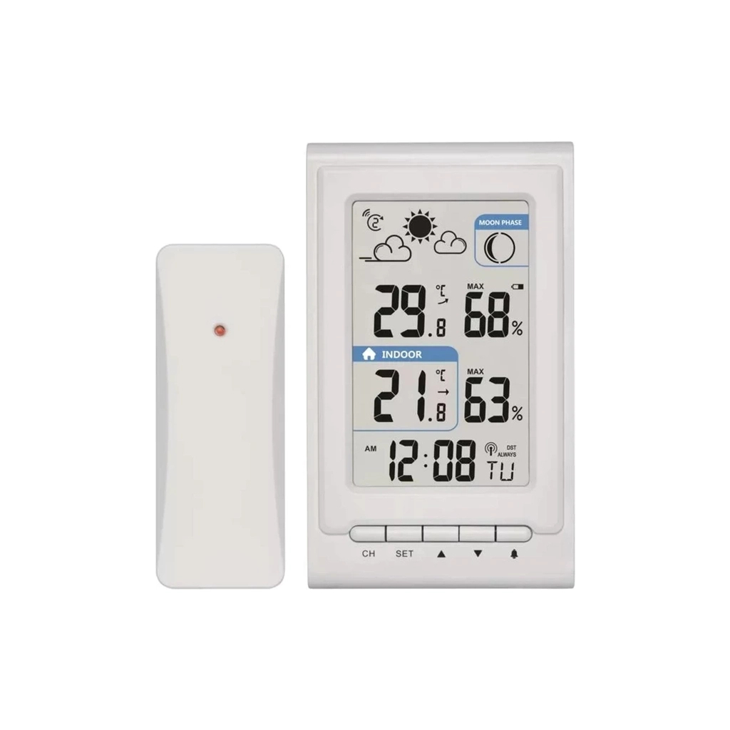 Беспроводная метеостанция E0352 от чешского производителя EMOS. Метеостанция с четким цифровым дисплеем предоставляет актуальную информацию о текущем времени, дате, температуре, влажности, фазах луны, и, прежде всего, прогнозе погоды, доступный на следующие 12-24 часа. Температура измеряется как в помещении, так и на улице. Оснащена беспроводным погодоустойчивым датчиком, с дальностью приема сигнала до 30 м, может быть сопряжена с 3 такими датчиками, и данные с них легко отображаются на дисплее.