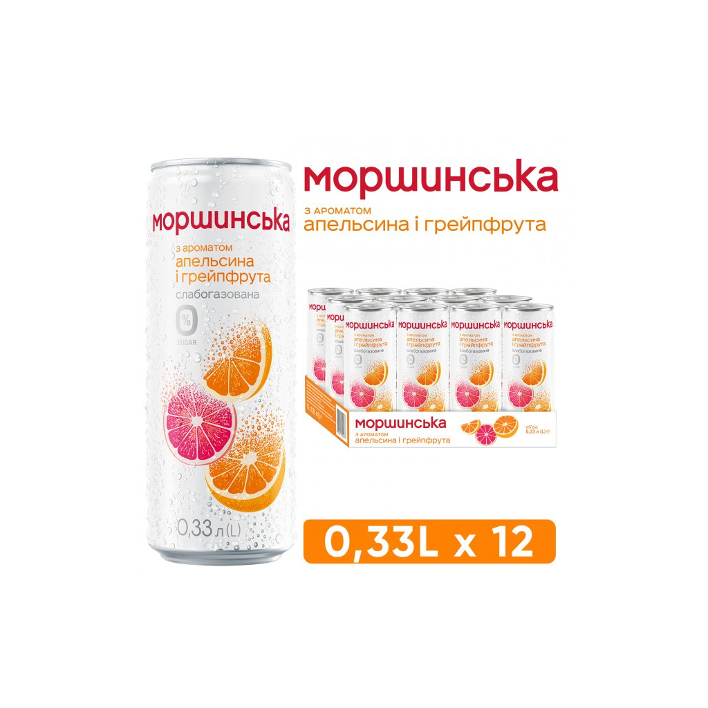 Мінеральна вода Моршинська з ароматом Апельсин-Грейпфрут 0.33 сл/газ ж/б (4820017002660)