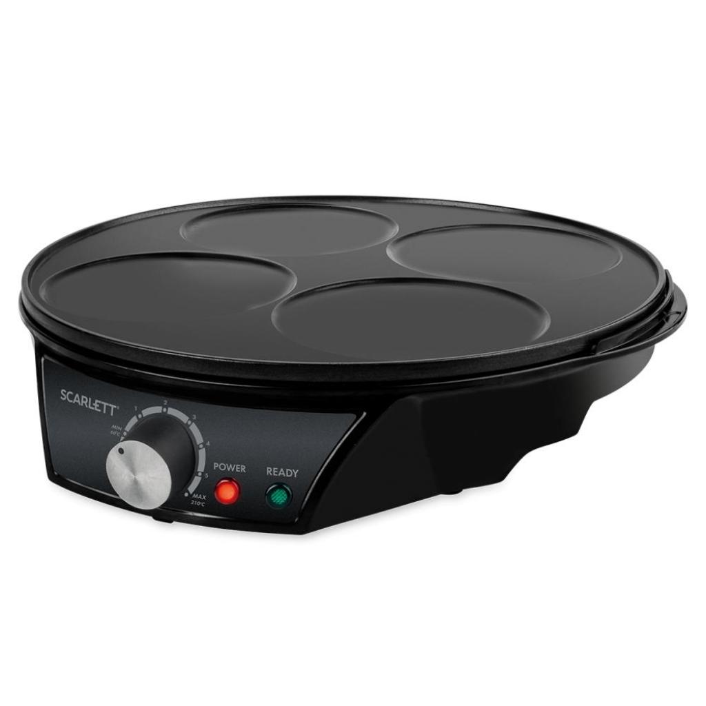 Электрическая блинница SCARLETT SC-PM229S01 - удобный и полезный прибор на любой кухне! Благодаря плавной регулировке температуры равномерно прожаривается любое тесто: тонкие блинчики, оладьи, глазунья и даже сырники. Приготовление блюд осуществляется без масла. Фиксированная панель на 4 блинчика 11 см позволит готовить больше и оперативнее. Антипригарное покрытие, температурный диапазон от 50 до 210 °C, ручки для переноски, прорезиненные ножки и световые индикаторы включения и готовности к работе сделают эксплуатацию прибора проще и безопаснее! Прибор не доставит хлопот в хранении благодаря фиксированной панели и отсеку для смотки шнура. Лопатка для блинов и книга рецептов идут в комплекте!