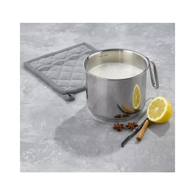 Его теплоемкое капсюльное дно изготовлено по технологии ударного склеивания, что обуславливает его устойчивость к деформации и способность оптимально распределять тепло при нагревании. Молочник подходит для приготовления кофейных напитков в больших объемах, он совместим со всеми типами плит, в том числе с индукционными. Может использоваться при температуре до 220°C.