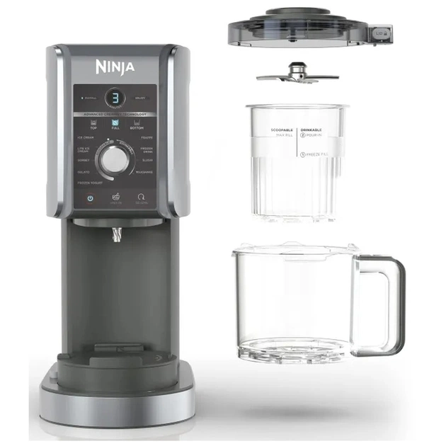 С помощью Ninja Creami Deluxe вы можете превратить почти любой продукт в лучшее мороженое и многое другое! Передовая технология CREAMify контролирует текстуру лакомства, а два мощных двигателя вращают профессиональную лопатку и моментально обрабатывают лед. Мороженица также идеально подходит для создания напитков и коктейлей, которые соответствуют вашему стилю жизни – от алкогольных до протеиновых и веганских, поэтому ищите их в руководстве и на сайте Ninja. За один раз вы получите до 2 литров вкусностей с 3 контейнерами!