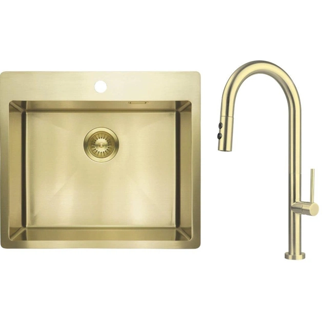 Набор для кухни Deante Olfato (ZPO_R10B+BQO_R72M) – стильное и практичное решение в современном дизайне. Мойка ZPO_R10B – выполнена из высококачественной нержавеющей стали в оттенке брошенного золота, имеет эргономичную прямоугольную форму, удобную чашу и устойчивое к повреждению покрытие. Смеситель BQO_R72M – в том же цвете, с элегантным современным дизайном и удобной поворотной отливкой.