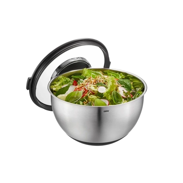 Чистота: эти элегантные миски, изготовленные из высококачественной нержавеющей стали, не только особенно универсальны и не скользят, но также имеют инновационную крышку для защиты от брызг, которая предотвращает раздражающие брызги крема или теста во время перемешивания и сохраняет пищу прекрасно свежей после этого.