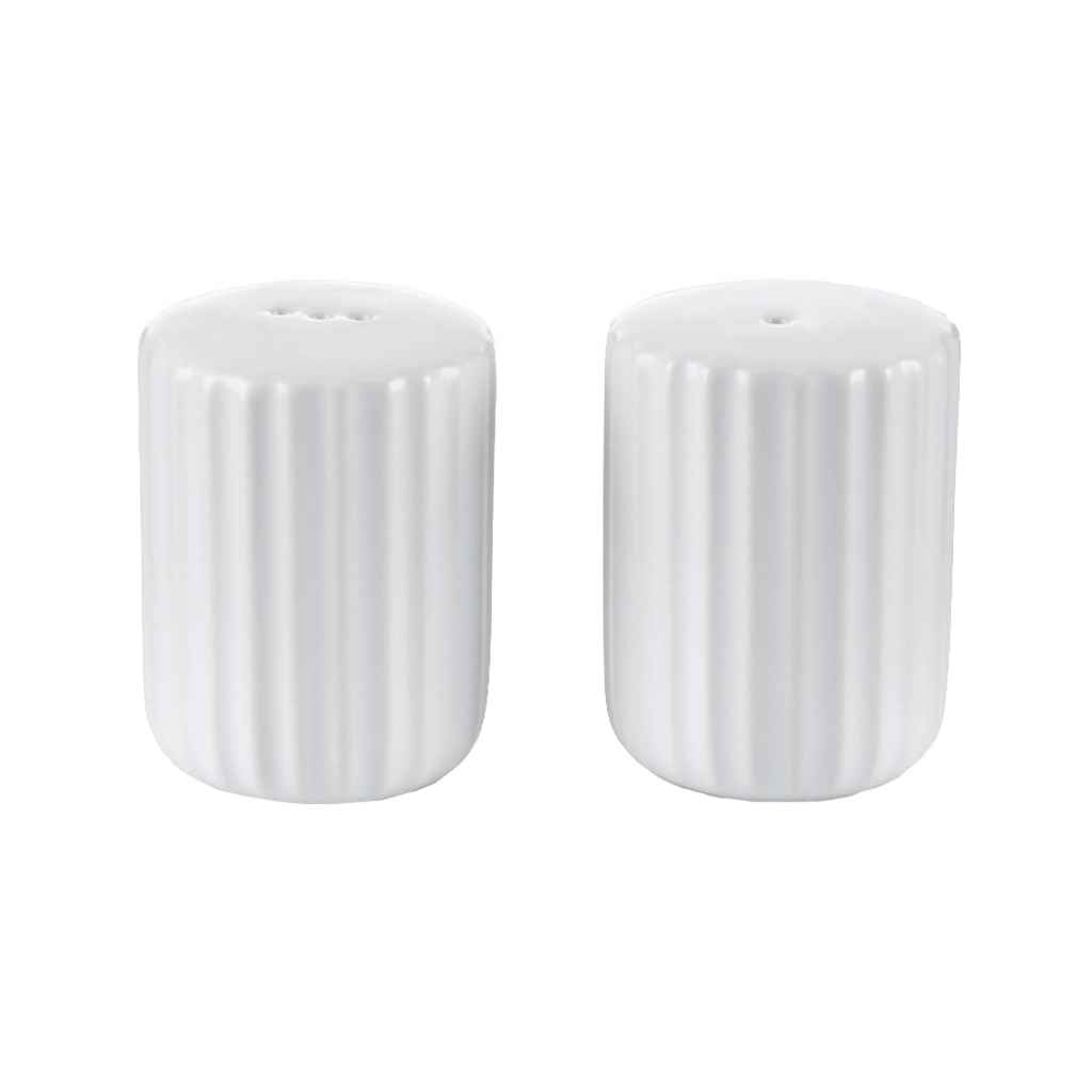 Набор для соли и перца сделан из матовой керамики и заполняется через отверстие в нижней части. Любая емкость имеет диаметр 5 см и высоту 7 см.