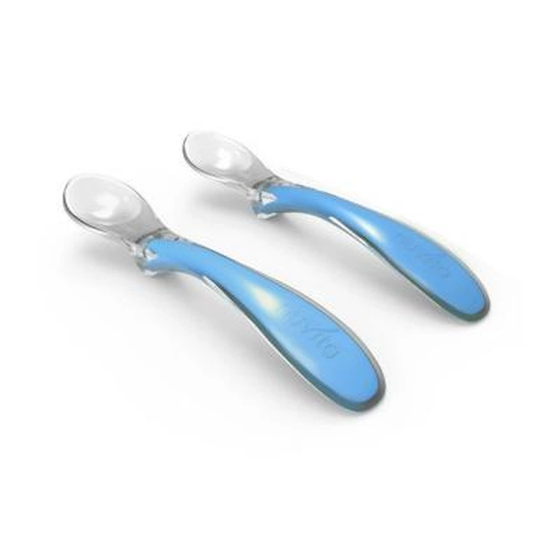 Две голубые ложечки для кормления малышей от итальянского бренда Nuvita. Они произведены из силикона, материал безопасен для детских десен и первых зубов. Особенность ложечек - специальная форма, благодаря которой, основная часть не касается поверхности обеспечивает дополнительную гигиеничность. Не содержит бесфинол-А и фталатов. Рекомендуется детям с 6 месяцев.