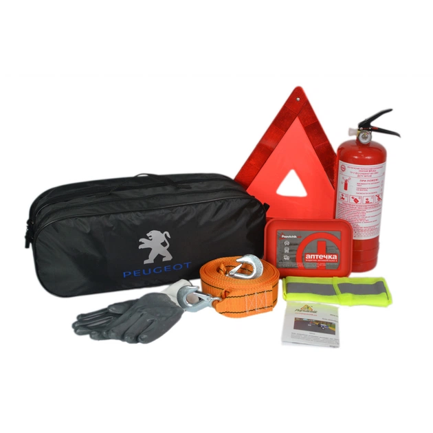 Набор автомобилиста "Peugeot кроссовер / минивэн" содержит все необходимые автоаксессуары, без которых, в соответствии с Правилами дорожного движения, эксплуатация авто запрещена. Набор имеет оригинальный дизайн. Удобная, вместительная сумка также пригодится для других автоаксессуаров. Усиленный буксировочный трос поможет при непредвиденных дорожных ситуаций. Незаменимая вещь для каждого автомобилиста.