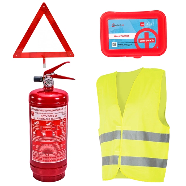 Набір техдопомоги Poputchik з вогнегасником ВП-2 "Економічний" (ВП-2+Знак+Аптечка+Жилет) (33-017-IS)