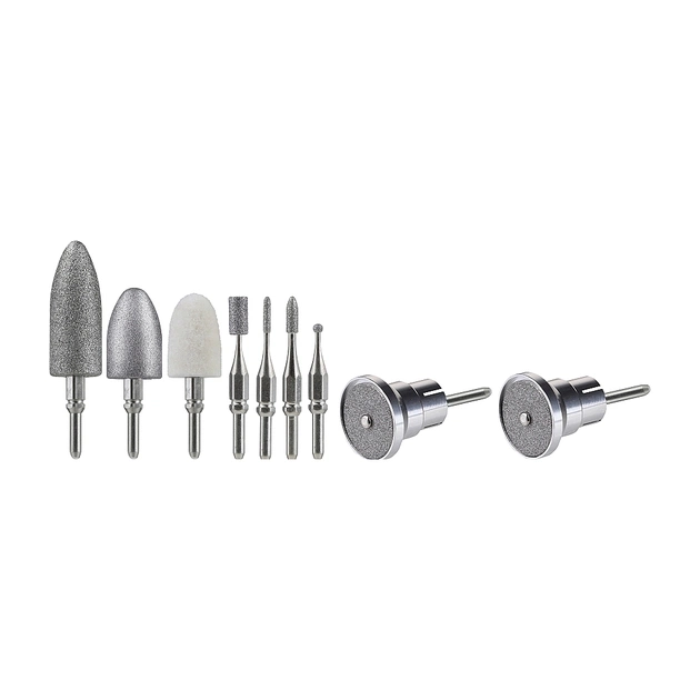 - В комплект входят десять профессиональных насадок с сапфировой и фетровой поверхностью.