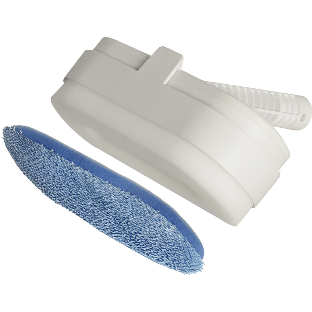 Эта насадка имеет две микрофибровые швабры, очень хорошо задерживающие грязь и пыль, и работает в комбинации с паром, что обеспечивает еще большую эффективность при очистке.
