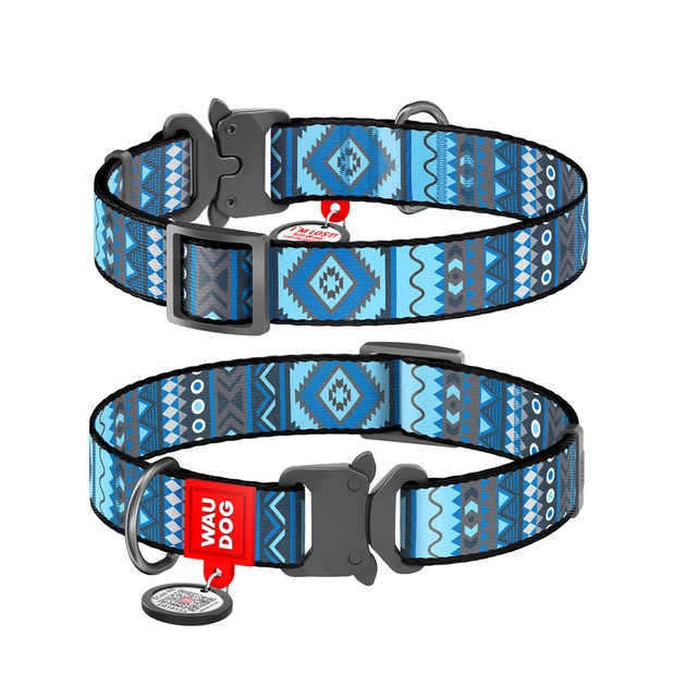 Ошейник для животных WAUDOG Nylon с QR паспортом "Этно синий" металлическая пряжка-фастекс M (5186)
