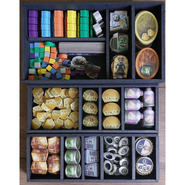 В комплекте игры есть всё необходимое для создания захватывающего игрового процесса: игровое поле, 255 картонных жетонов, 74 деревянных жетона, 22 деревянные крысы, карты, памятки, блокнот для подсчета очков и правила. Имея версии на английском и немецком языках, "Первый Крыса" доступен широкой международной аудитории.