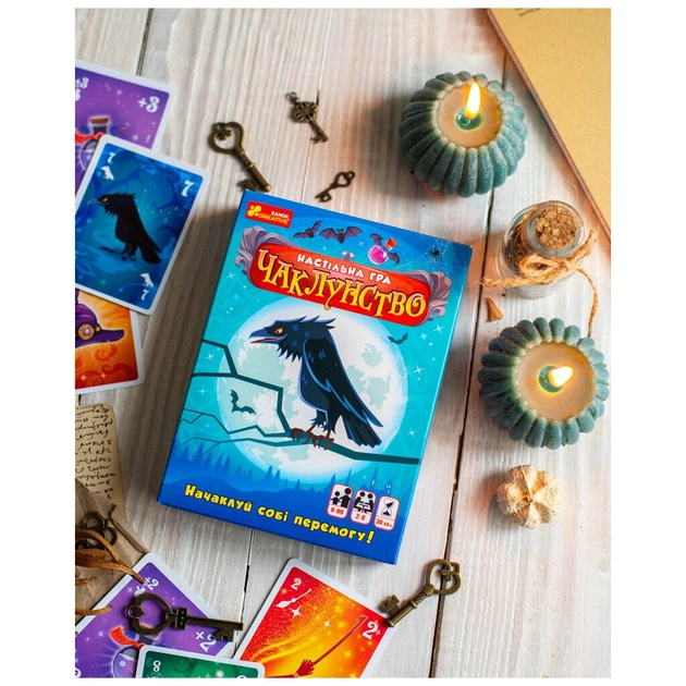 45 игральных карт; 44 карты «Колдовство»; 7 карт «Шляпа ведьмы»; 5 карт «Балы»; карта «Магическая пуля»; правила.