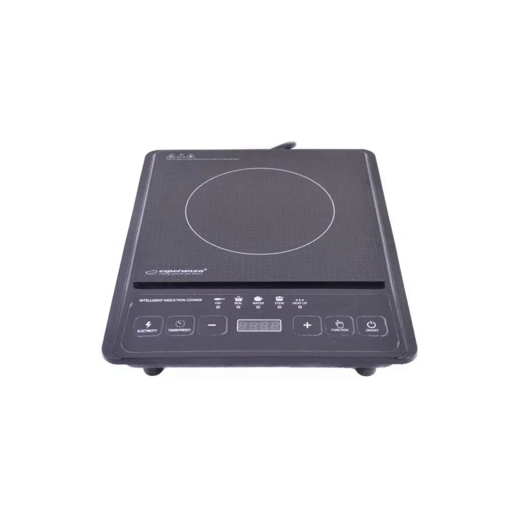 Настольная индукционная плита EKH011 от компании Esperanza оснащена одной конфоркой мощностью 2000 Вт и управляется сенсорными датчиками.