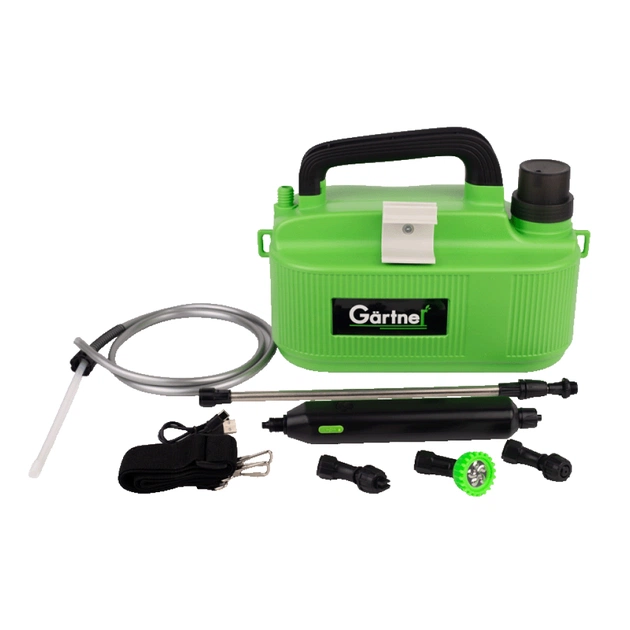 Аккумуляторный опрыскиватель 5 л GARTNER — надёжный и удобный помощник для обработки сада, огорода, теплицы или клумб. Благодаря автоматическому созданию давления и увеличенному объёму резервуара, опрыскиватель подходит как для бытового, так и для полупрофессионального использования.Не требует ручной подкачки — просто нажмите кнопку, и устройство начнёт распыление.