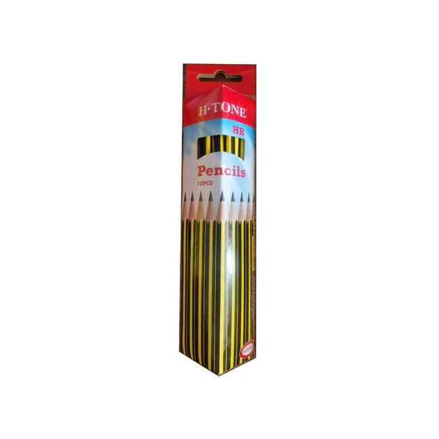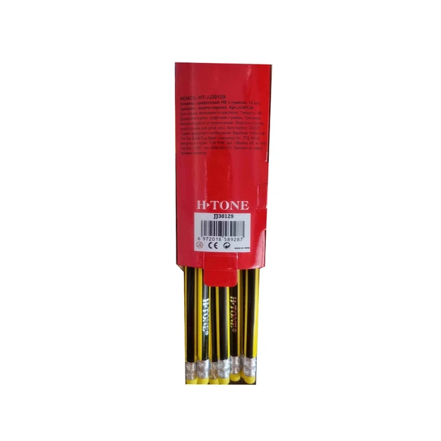 Карандаш графитный H-Tone НВ, трехгранный, с резинкой, желтый с черным, уп.12 шт (PENCIL-HT-JJ30129)