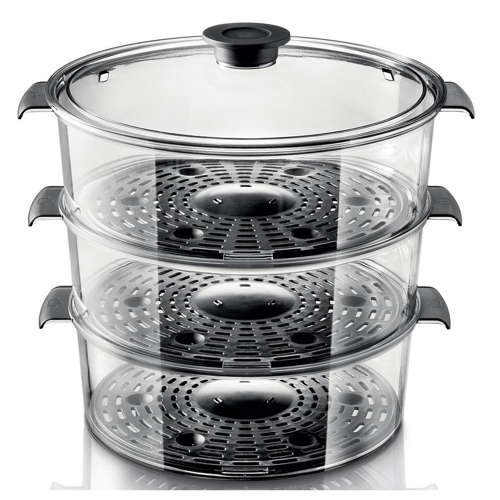 Прибор станет незаменимым помощником на кухне. Теперь вы сможете за раз приготовить весь обед или ужин и не затрачивать на это слишком много времени. А большой объем емкостей и съемное дно позволит приготовить даже целую курицу, кукурузу и т.п.