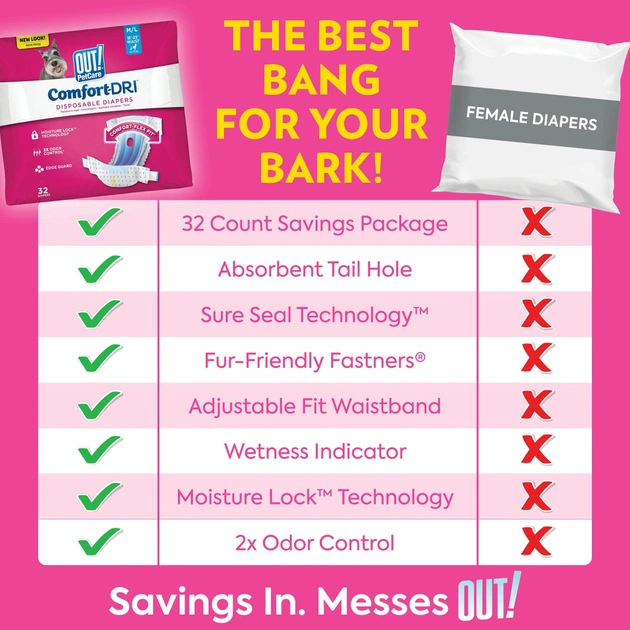 Подгузники для животных OUT! Comfort-Dri Disposable Diapers Одноразовые для сук малых пород XS-S (0010279706626)