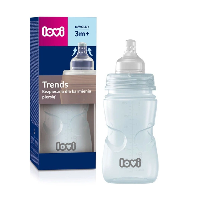 LOVI Бутылочка Trends – безопасна для деток на грудном кормлении потому, что не препятствует рефлексу сосания.